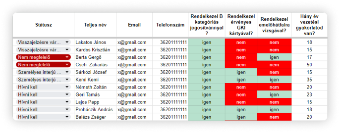 A jelentkezőket egy automatikusan frissülő Google táblázatban láthatod és kezelheted.